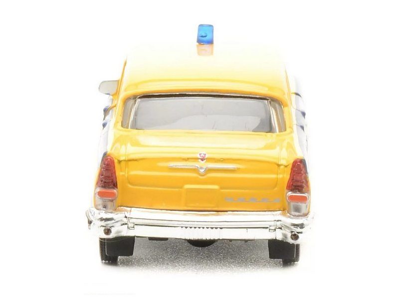Инерционная коллекционная модель Autotime ГАЗ-13 "Чайка" - уменьшенная копия реального автомобиля. Игрушка изготовлена из металла и высококлассного пластика. У нее вращаются колеса. Двери машинки открываются, что позволяет рассмотреть салон изнутри в деталях. Модель ГАЗ-13 "Чайка" выполнена желтом цвете с гербом и надписью милиция на дверях и оборудована спецсигналом на крыше.