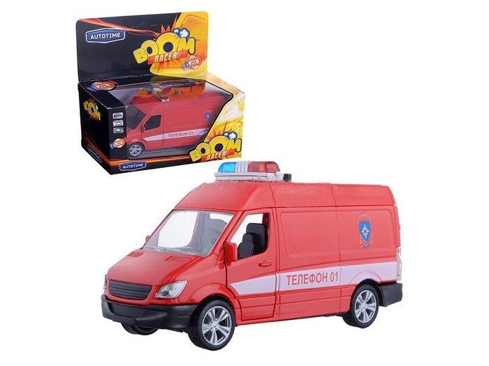 Инерционная коллекционная модель Autotime Germany Panel Van - уменьшенная копия реального автомобиля. У нее вращаются колеса. Двери машинки открываются, что позволяет рассмотреть салон изнутри в деталях. Модель окрашена в характерный для пожарной охраны ярко-красный цвет с надписью 01. На крыше укреплена имитация красно-синей мигалки. Световые и звуковые эффекты приведут в восторг любого мальчика.