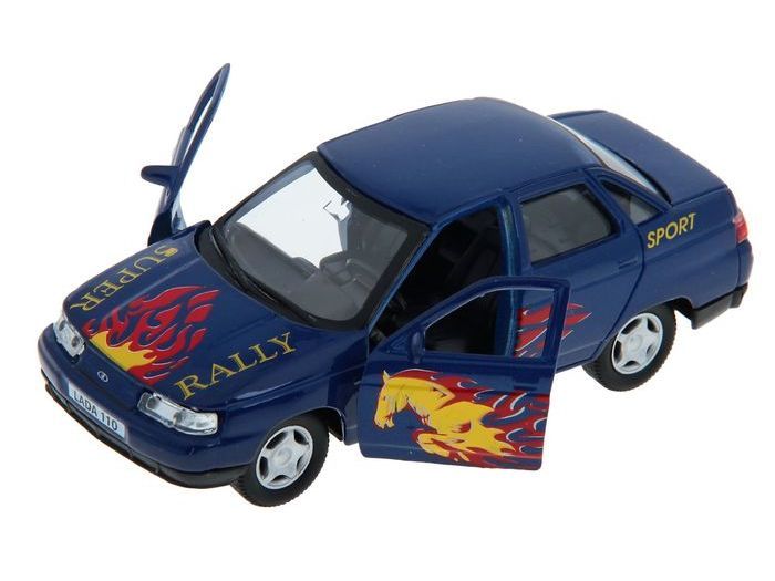 Инерционная коллекционная модель Autotime Lada 2110 - уменьшенная копия реального автомобиля. У нее вращаются колеса. Двери машинки открываются, что позволяет рассмотреть салон изнутри в деталях.