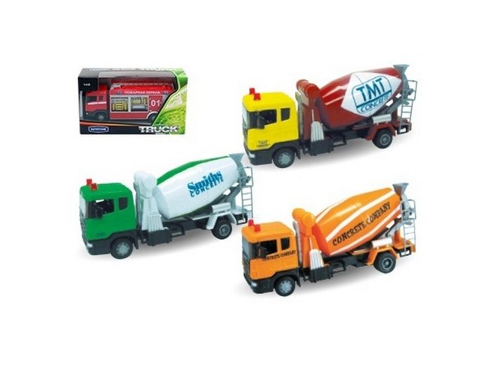 Модель оснащена инерционным механизмом, работающим по всем известному принципу - прижать к полу, откатить назад, отпустить. Модель Scania Бетономешалка имеет три варианта расцветки.