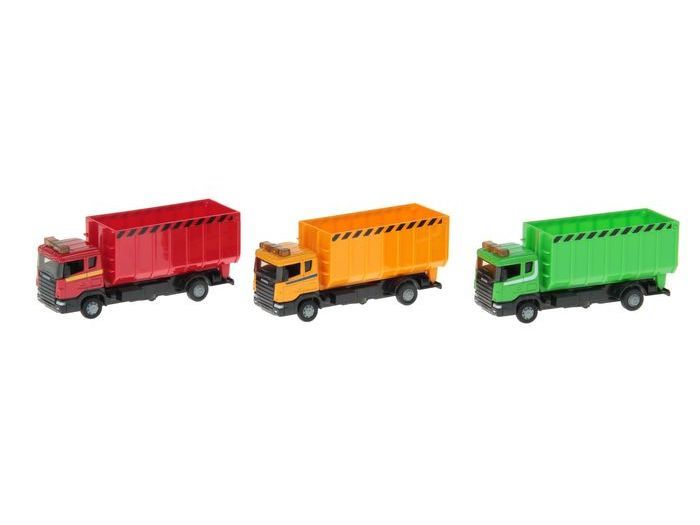 Модель оснащена инерционным механизмом, работающим по всем известному принципу - прижать к полу, откатить назад, отпустить. Модель Scania Стройконтейнер имеет три варианта расцветки: красный, оранжевый, зеленый.
