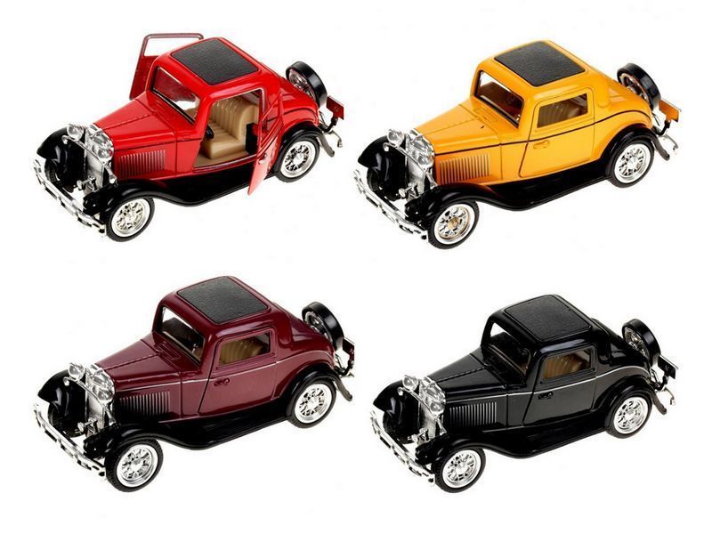 Машинка выполнена в стиле "Ретро" из серии Old Times. У нее вращаются колеса. Двери машинки открываются, через которые можно рассмотреть салон.