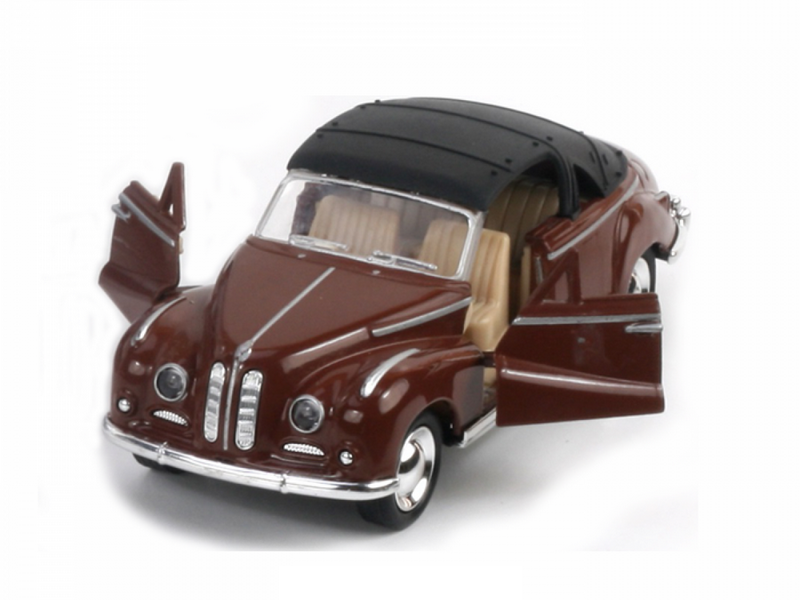 Машинка выполнена в стиле "Ретро" из серии Old Times. У нее вращаются колеса. У машинки открываются двери, через которые можно рассмотреть салон.