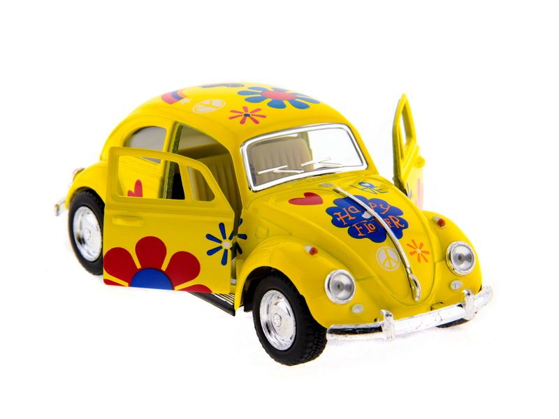 Машинка Kinsmart (KT5057DF) Volkswagen Classical Beetle with printing 1/32 - инерционная машинка, ничем не уступающая оригиналу, так как все детали продуманы до мелочей.