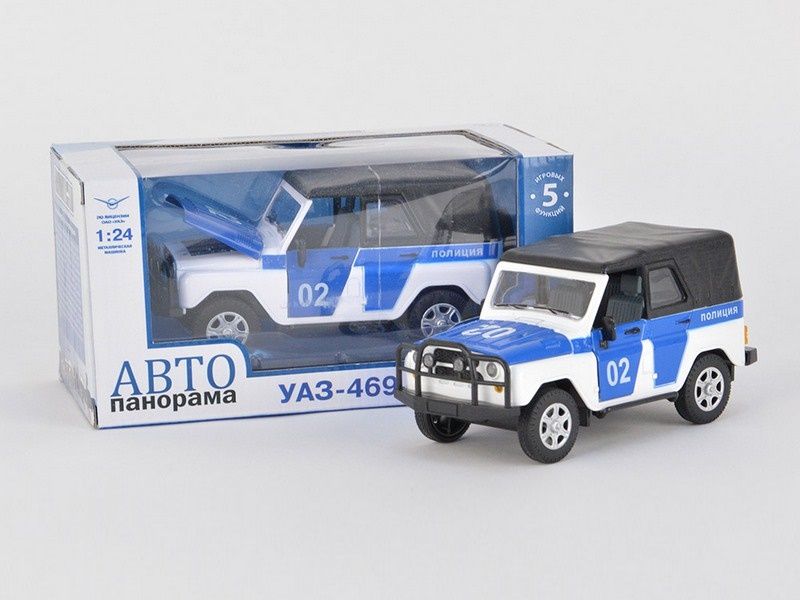 Модель 1:24 УАЗ-469 представляет собой точную копию настоящего автомобиля. Машинка выпущена известной компанией по производству игрушек Автопанорама. Особенность коллекции в том, что все модели изготовлены по лицензии именитых автопроизводителей.
