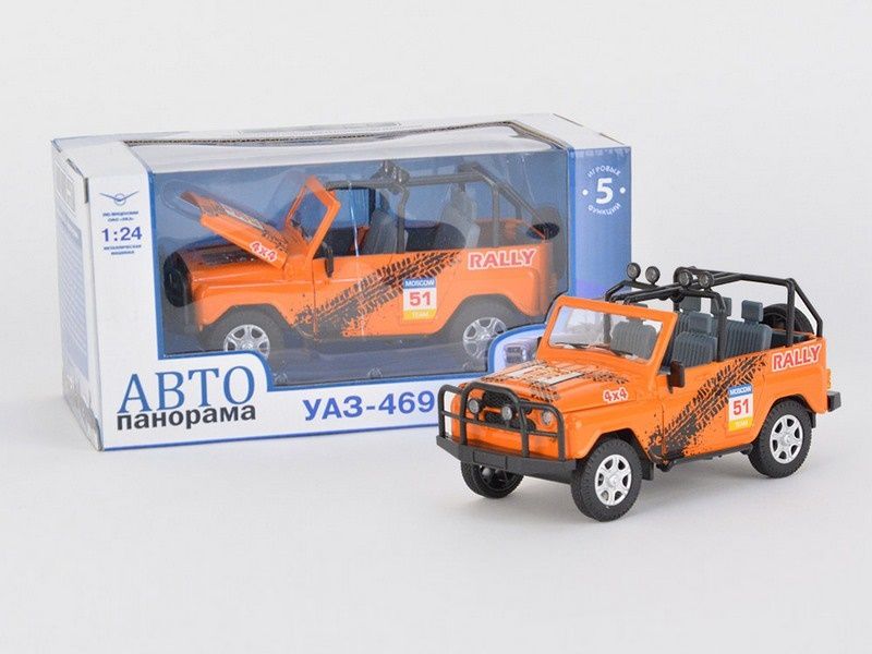 Модель 1:24 УАЗ-469 представляет собой точную копию настоящего автомобиля. Машинка выпущена известной компанией по производству игрушек Автопанорама. Особенность коллекции в том, что все модели изготовлены по лицензии именитых автопроизводителей.