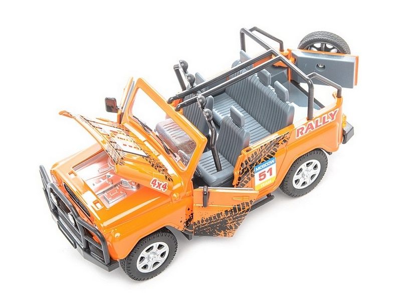 Машина "АВТОПАНОРАМА" УАЗ-469 1/24 в/к 22*12*11 см, оранжевая