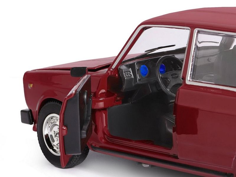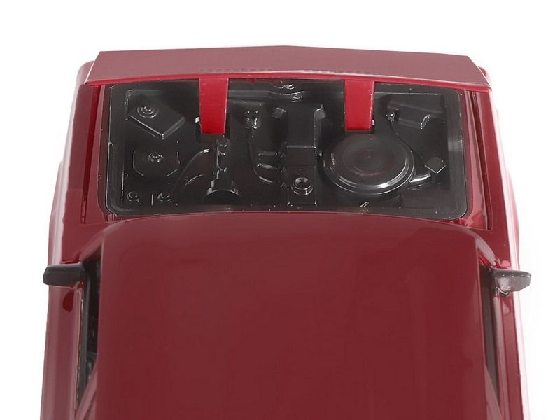 Модель выполнена в масштабе 1:24, у нее открываются передние двери, капот и багажник. Игрушка оснащена инерционным механизмом - если откатить автомобиль немного назад и отпустить, он поедет вперед. При нажатии на корпус и при открытии дверей начинают светиться фары и включается звук.
