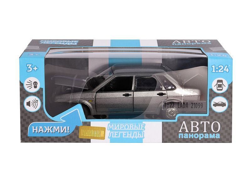 Машина "АВТОПАНОРАМА" ВАЗ 21099, 1/22, серый, инерция, в/к 24,5*12,5*10,5 см