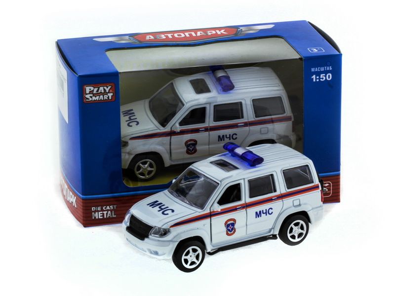 Модель машинки МЧС 1:50 представляет собой точную копию настоящего автомобиля. Машинка выпущена известной компанией по производству игрушек Автопанорама. Особенность коллекции в том, что все модели изготовлены по лицензии именитых автопроизводителей.