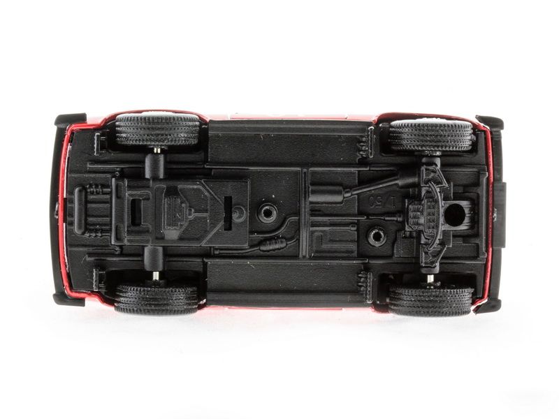 Модель изготовлена из металла с элементами пластика. У нее открываются двери и вращаются колеса. Внутри машины детально проработана приборная панель и отделка салона. Кроме того, игрушка оснащена инерционным механизмом, работающим по всем известному принципу - прижать к полу, откатить назад, отпустить.