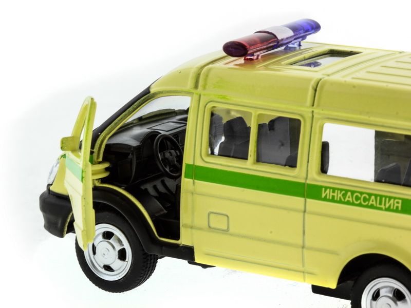 Модель машинки Газель Инкассация 1:50 представляет собой точную копию настоящего автомобиля. Машинка выпущена известной компанией по производству игрушек Автопанорама. Особенность коллекции в том, что все модели изготовлены по лицензии именитых автопроизводителей.