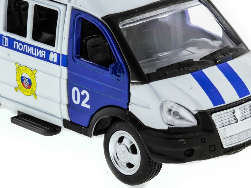 Модель машинки Газель Полиция 1:50 представляет собой точную копию настоящего автомобиля. Машинка выпущена известной компанией по производству игрушек Автопанорама. Особенность коллекции в том, что все модели изготовлены по лицензии именитых автопроизводителей.