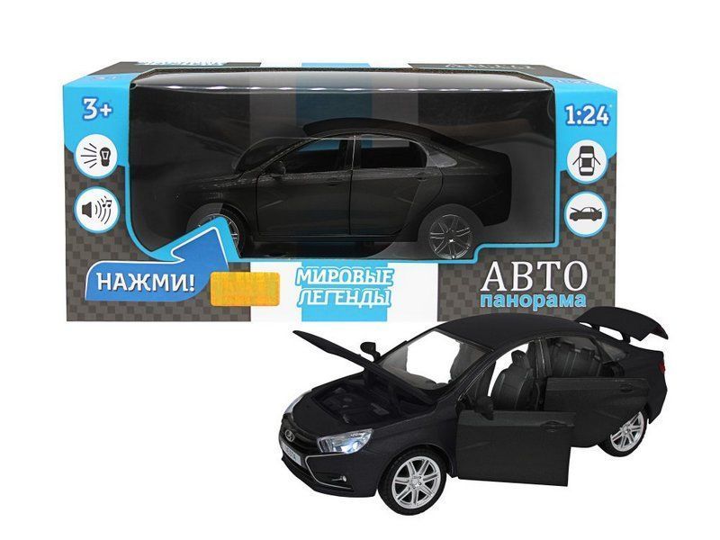 Машина "АВТОПАНОРАМА" LADA VESTA седан, 1/24, черный металлик, свет, звук, в/к 24,5*12,5*10,5 см