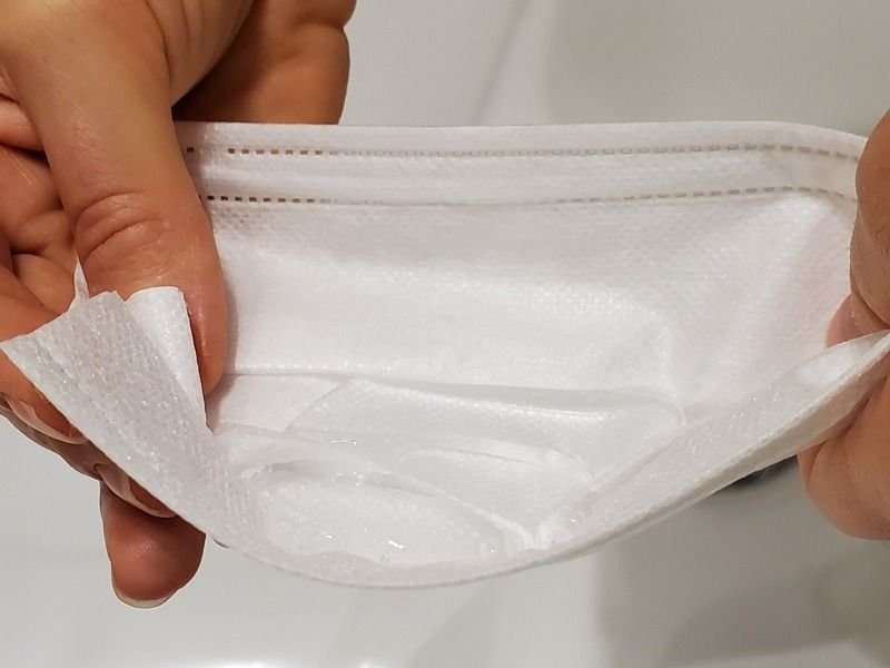 Маска имеет 3 слоя, состоящие из нетканного материала. Резинки для фиксации позволяют удобно носить маску, а фиксатор для носа для плотного пролегания маски к лицу. После использования маска должна утилизирована.