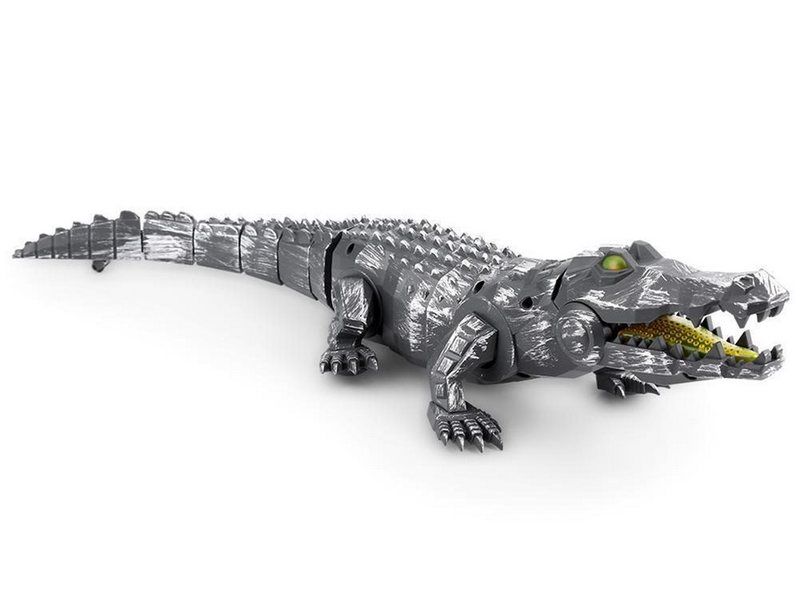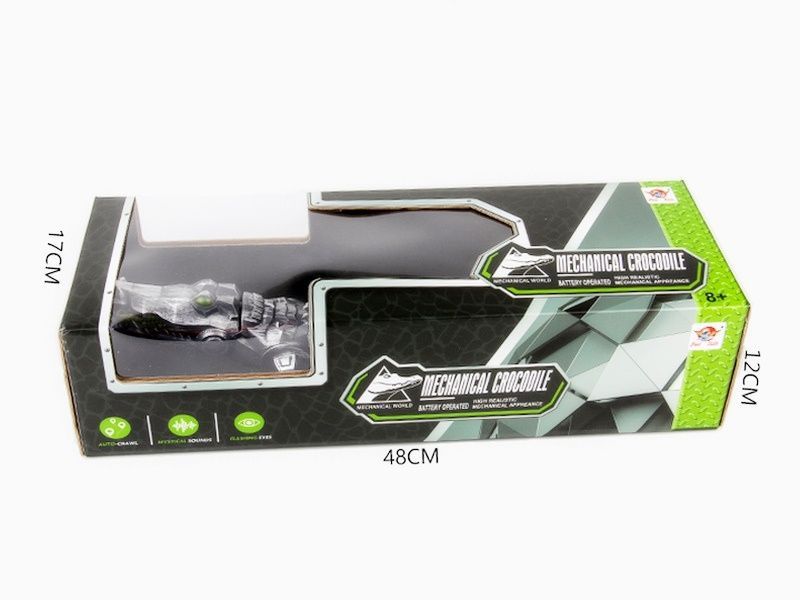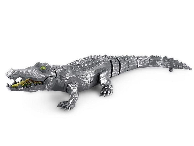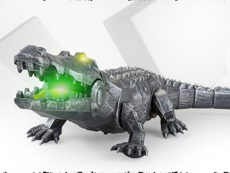 Механический крокодил от Feilun - это довольно крупная копия настоящего крокодила. Он подражает ходьбе настоящего крокодила, двигая конечностями, он открывает пасть для захвата, он двигает хвостом вправо-влево и издает грозные звуки. Светодиоды на языке и глазах позволяют охотиться в темное время суток.