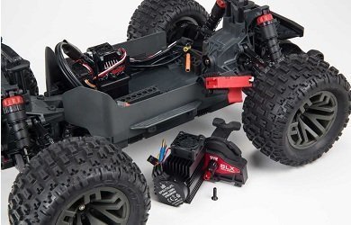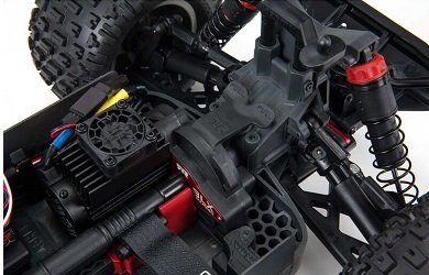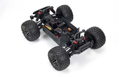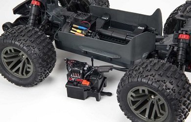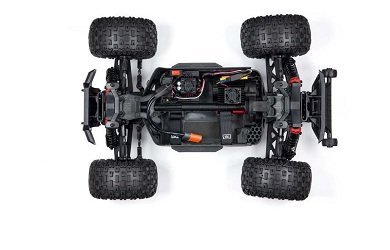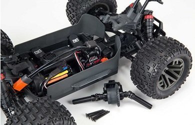 Комплект поставки включает обновлённую аппаратуру радиоуправления Spektrum SLT и приёмник SLR300. Благодаря эргономичному дизайну передатчика SLT3, его прорезиненной ручке и рулевому колесу из вспененного мягкого материала, вы проведёте заезды с максимальным комфортом, поскольку у вас не будут уставать руки, а точность управления будет на высоте! Для новичков есть специальный режим с ограничением газа до 50 и 75%. Монстр сохранил оригинальную модульную конструкцию, которую разработали инженеры ARRMA специально для более удобного обслуживания модели.