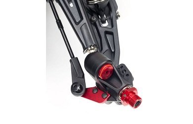 Быстросъёмная красная анодированная моторама откручивается в несколько движений для быстрого доступа к мотору и замены передаточных чисел.