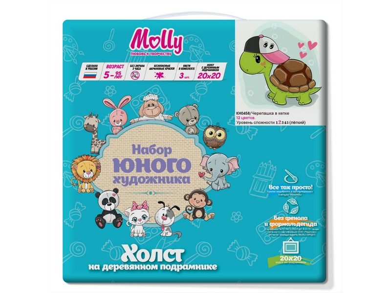 Набор юного художника 20х20 Черепашка в кепке (12 цветов)