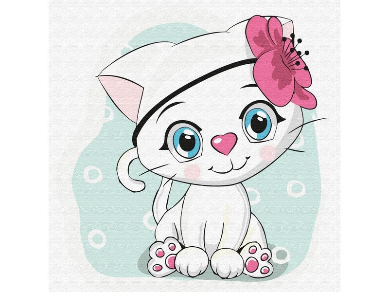 С помощью набора для творчества можно нарисовать очаровательную кошечку с ободком, украшенным цветком. Для такого творчества не требуются специальные художественные навыки. Нужно лишь следовать инструкции и время от времени сверяться с цветовой схемой рисунка.