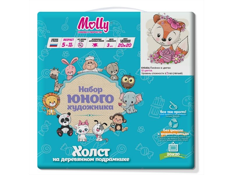 Набор юного художника 20х20 Лисенок в цветах (12 цветов)