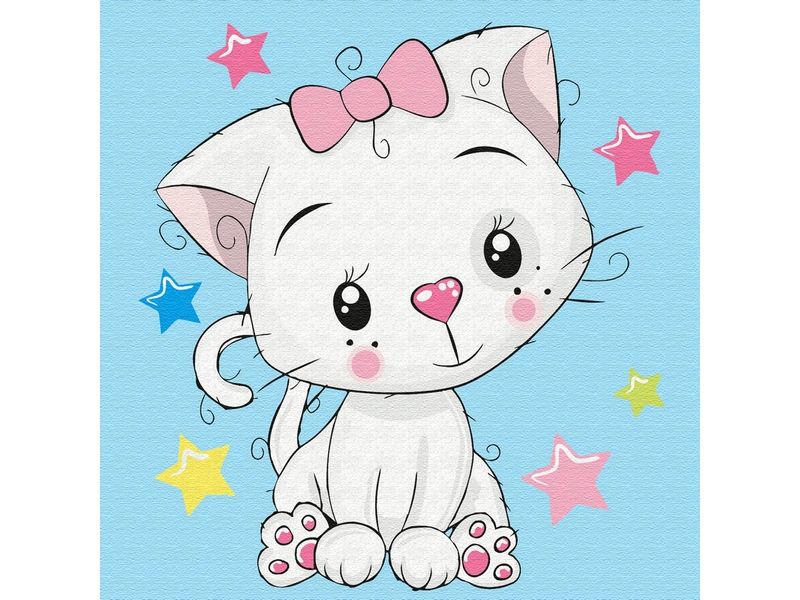 С помощью набора для творчества можно нарисовать белую кошечку с розовым бантом. Для такого творчества не требуются специальные художественные навыки. Нужно лишь следовать инструкции и время от времени сверяться с цветовой схемой рисунка.