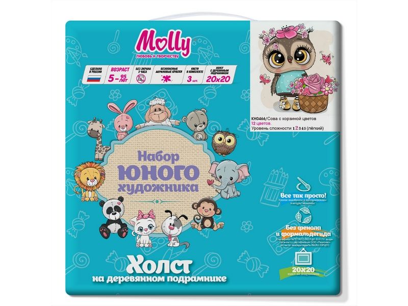 Набор юного художника 20х20 Сова с корзиной цветов (12 цветов)