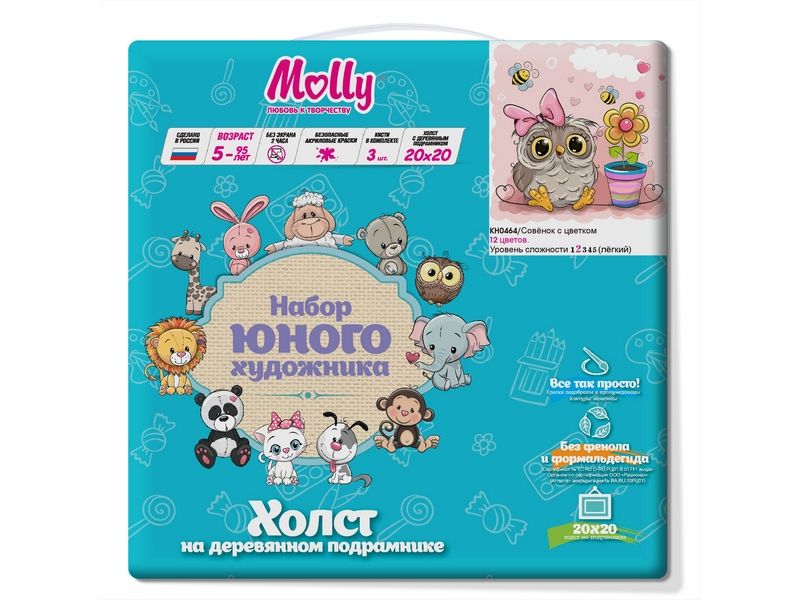 Набор юного художника 20х20 Совёнок с цветком (12 цветов)