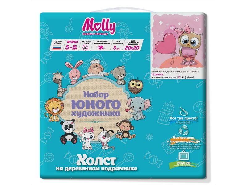Набор юного художника 20х20 Совушка с воздушным шаром (12 цветов)