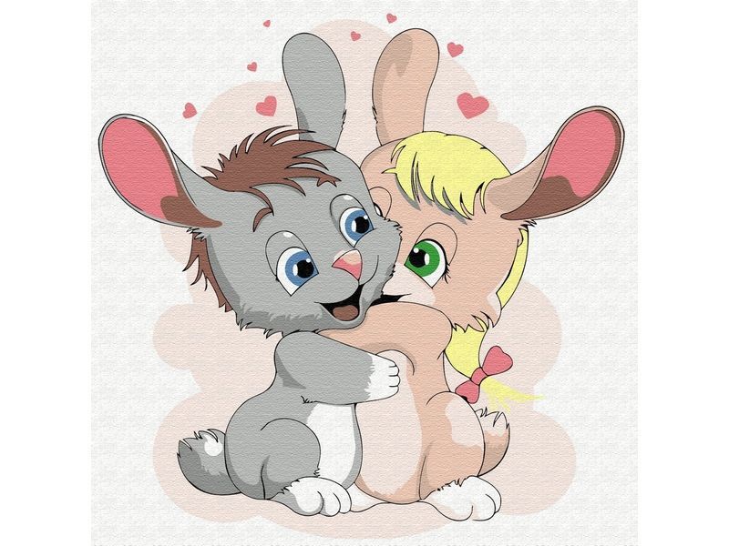 С помощью набора для творчества можно нарисовать картину с двумя зайчиками. Для такого творчества не требуются специальные художественные навыки. Нужно лишь следовать инструкции и время от времени сверяться с цветовой схемой рисунка.