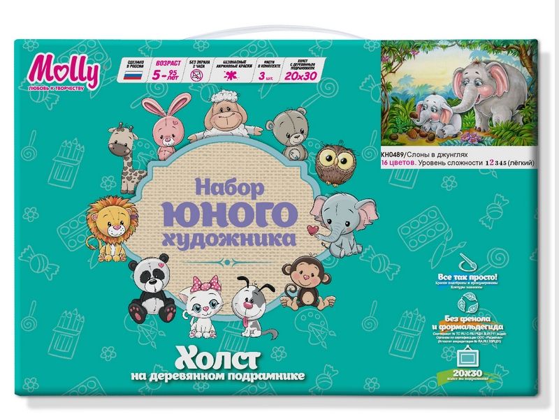 Набор юного художника 20х30 Слоны в джунглях (16 цветов)