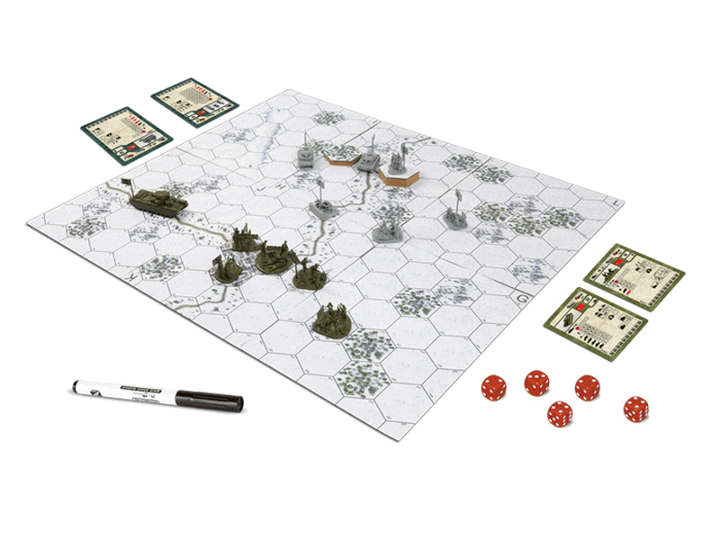 Модели в составе набора: 28 фигур пехоты, модель немецкого танка и модель советского танка, 6 фишек дыма и 2 фишки огня, 3 двусторонних игровых поля, 30 элементов местности и 3 элемента высот, 15 игровых карточек, 2 памятки игроков, 10 кубиков, книга сценариев и книга правил.