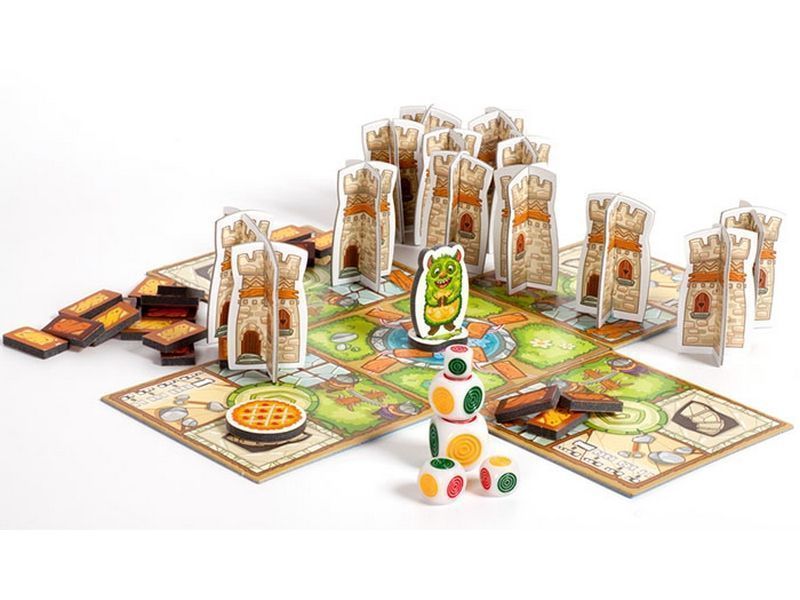 Строить башни для нового замка принцессы Ларисы дело не такое уж простое. Только кажется, что нужно бросать игровые кубики и строить из кирпичей башню из выпадающих на гранях кубика цветов. Важно, чтобы кирпичи были одного цвета. Но если вдруг игрок не захочет ставить кирпич неподходящего ему цвета, то к нему из центра поля начнет приближаться кирпичеядный монстр. И когда-нибудь он сможет подойти настолько близко, чтобы слопать всю построенную башню.Спасти постройку сможет только пирог, благосклонно подаренный принцессой Ларисой. А если вдруг пирог находится у другого игрока, то он сразу же передаст сладкую "защиту" пострадавшему от монстра игроку.