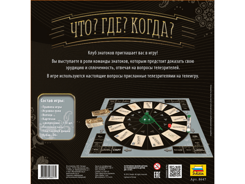 Настольная игра «Что? Где? Когда? » включает в себя все особенности одноименной популярной телевизионной игры. Вы сможете почувствовать себя знатоком или ведущим, проверить свою эрудицию, смекалку и научиться играть в команде.