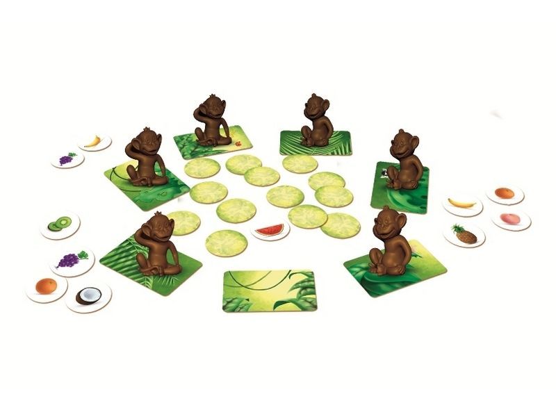 Быстрая веселая семейная игра, развивающая память. Игроки должны накормить веселых обезьянок. Каждая из них любит только определенный вид фруктов. При этом они совершенно неотличимы одна от другой. Игрокам необходимо запомнить, что любит каждая из обезьянок. Тот, кто справиться с этим лучше, накормит больше мартышек и победит в игре.