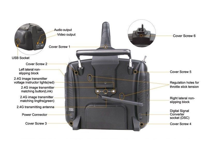 В комплекте идет компактный и легкий приёмник RX701 с гибкой коаксиальной антенной, вы сможете установить его в любом месте вашей модели. Привязка передатчика и приемника предельно проста, она осуществляется путём нажатия всего одной кнопки. Каналы управления оборудованы переключателями реверса. Переключатели реверса каналов и выключатель питания находятся на виду и защищены от случайного переключения