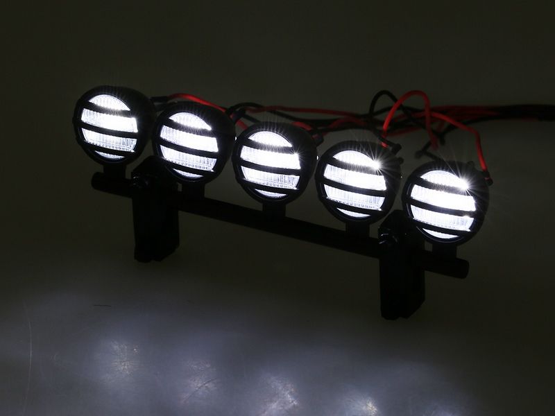 5 передних светодиодных прожекторов на кузов для радиоуправляемых краулеров масштаба 1/10.