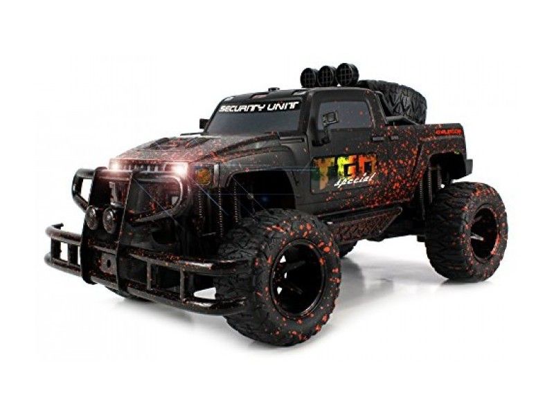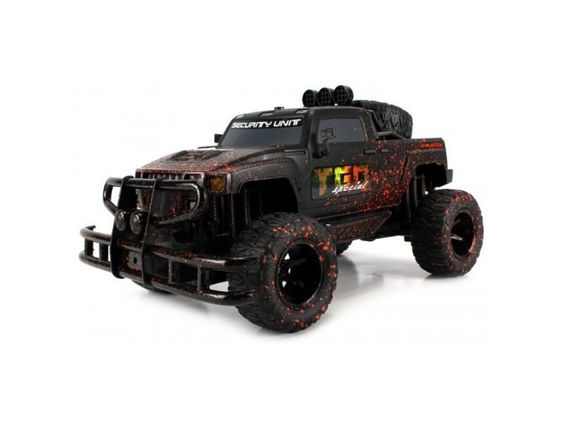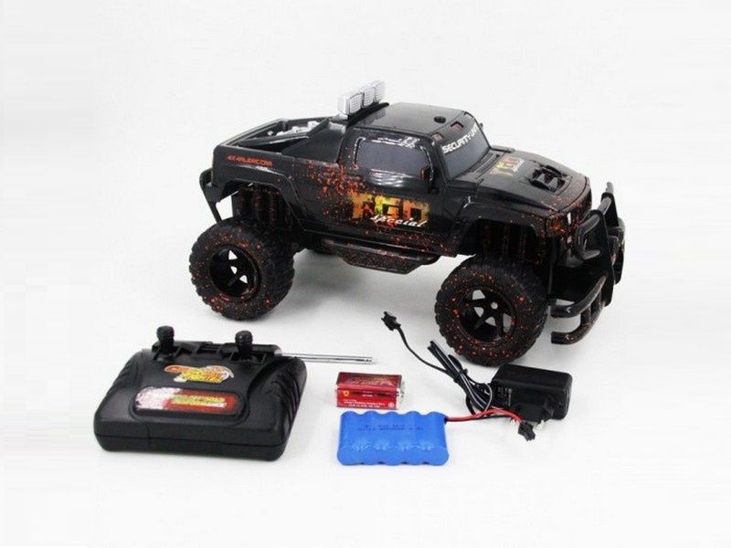 Радиоуправляемый гоночный джип отличается очень интересным дизайном – в виде крутого внедорожника. Предназначен для гонок как на ровных поверхностях, так и по бездорожью. 6 огромных резиновых колес с глубокими протекторами предают данной модели устойчивость на дорогах и полный контроль. Корпус выполнен из ударопрочного ABS пластика. Впереди присутствует имитация бампера безопасности. Машинка работает от аккумулятора 6V, пульт – крона 9V.