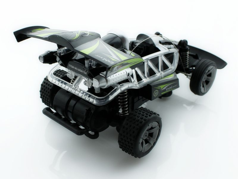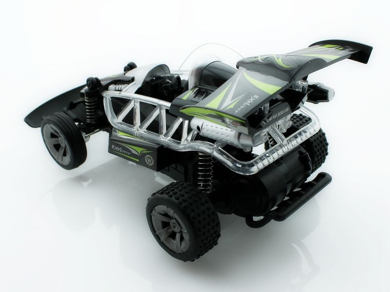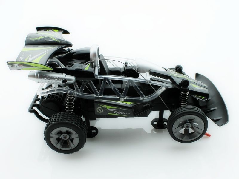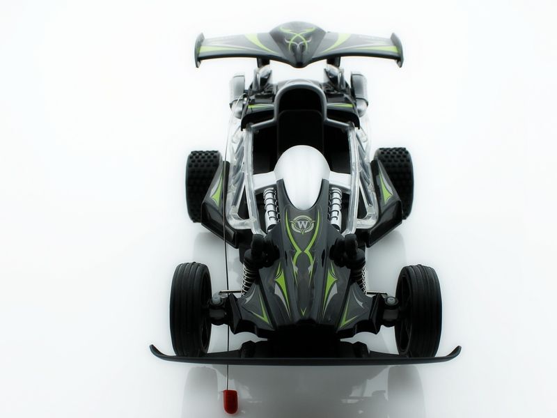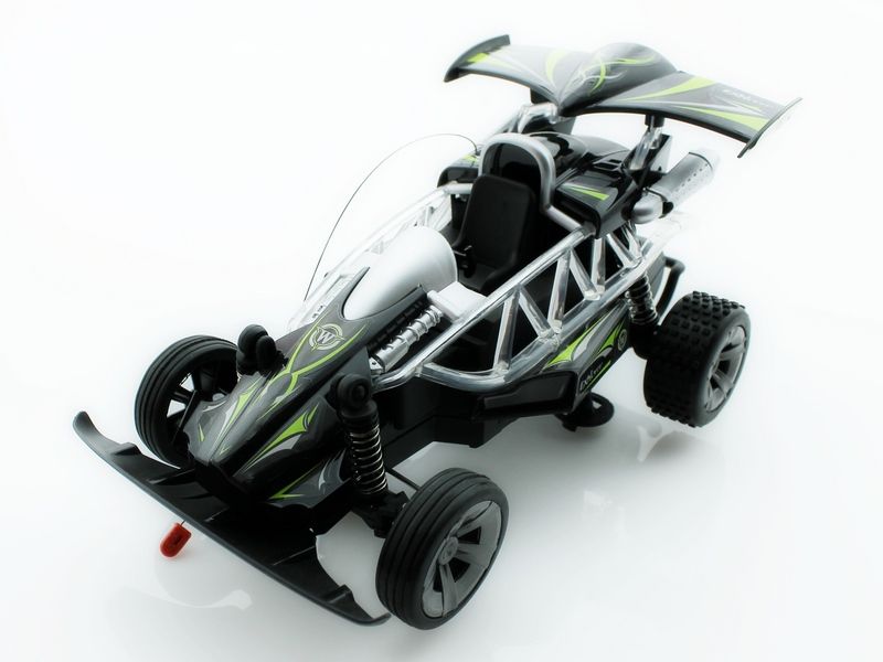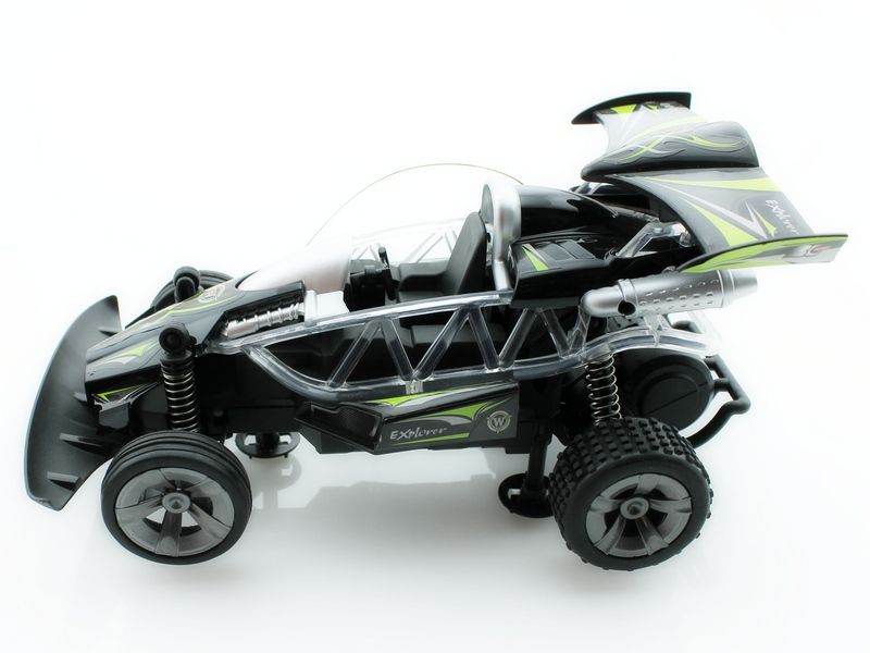 Багги оснащена большими и мягкими резиновыми колесами, отличается неплохой проходимостью и великолепным внешним видом. Машина имитирует различные звуковые сигналы настоящего автомобиля. Световая подсветка добавляет красоты автомобилю.