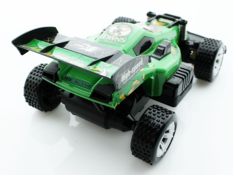 Багги оснащена большими и мягкими резиновыми колесами, отличается неплохой проходимостью и великолепным внешним видом. Световая подсветка добавляет красоты автомобилю. Все в комплекте, вам остается только наслаждаться игрой.