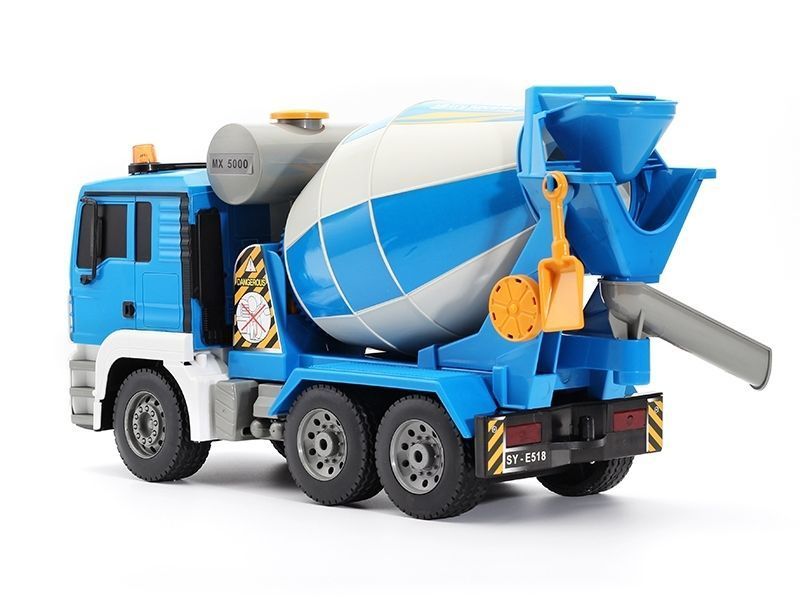 Вращение смесительного барабана влево и вправо со сбросом Реалистичная звуковая имитация работы двигателя Подвижный рог для бетона Звуковое оформление Световые эффекты Скорость ~ 8 км/ч Привод: задний Пульт дистанционного управления 2.4Ghz Дальность действия пульта: до 30 метров Питание: аккумулятор Ni-Cd 4.8V 400 mAh масштаб: 1/20 длина: 380 мм ширина: 135 мм высота: 210 мм вес: 1040 г модель радиоуправляемая полностью собранная бетономешалка пульт дистанционного управления аккумулятор: Ni-Cd 4.8V 400 mAh зарядное устройство инструкция 2АА батарейки для пульта управления