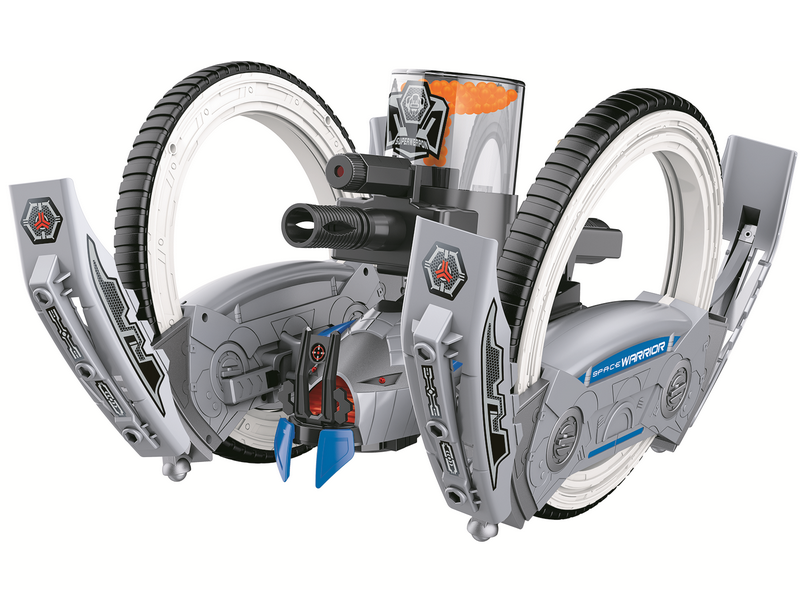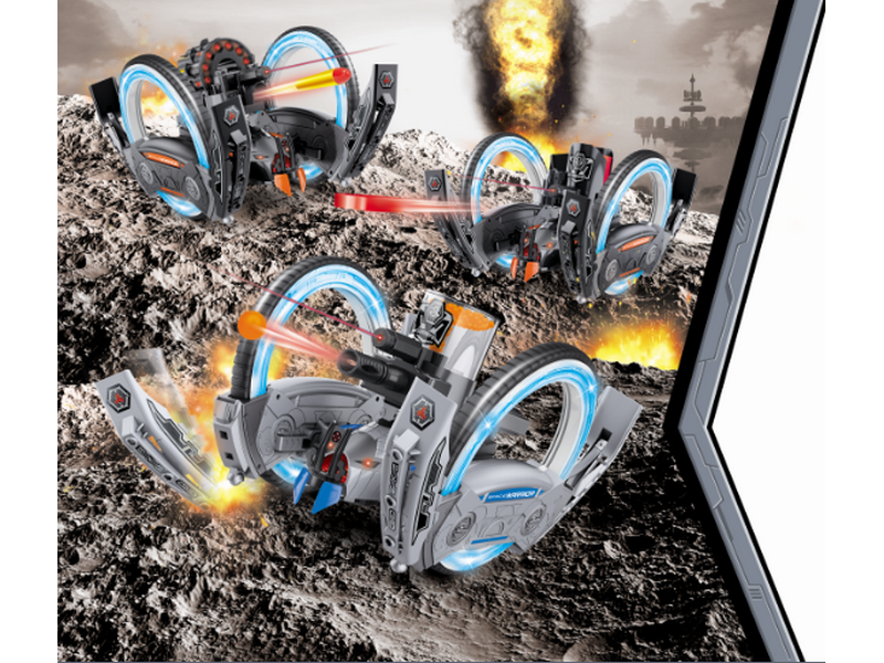 Робот стреляет пластиковыми пульками, расположенными в специальной обойме с автоматической зарядкой боевой пушки. На роботе расположена броня, которая отваливается при попадании в нее, а после трех успешных попаданий в робота, он выходит из строя. Для того чтобы вновь вернуться в игру необходимо перезапустить боевую машину. На моделе установлена светодиодная подсветка с индикацией вашей жизни, которая проинформирует вас сколько попаданий осталось до отключения вашего робота. Заднеприводные колеса позволяют двигаться во всех направлениях и делать повороты на 360°. Для более плавной езды робот оборудован амортизаторами. А для еще большей реалистичности игрового процесса, робот оснащен звуковыми эффектами.