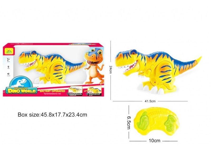 Тиранозавр выполнен по мотивам мультфильма "Dino World". Игрушка управляется с помощью пульта управления, где одна кнопка отвечает за ноги, а вторая за голову. Тиранозавр может открывать и закрывать рот, двигать ногами и рычать, отпугивая врагов.