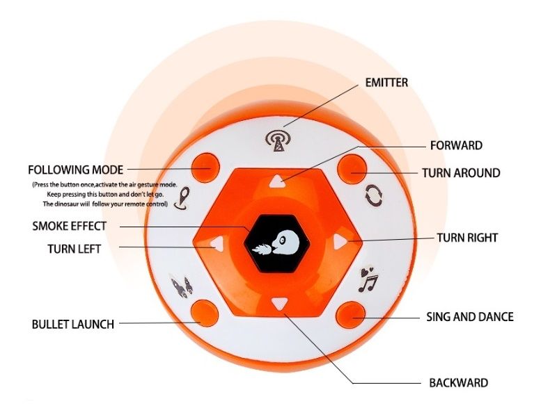 Касаясь точки сенсора у динозавра, он будет двигаться назад и поворачиваться по кругу. Далее он будет двигаться вперед и издавать звуки.