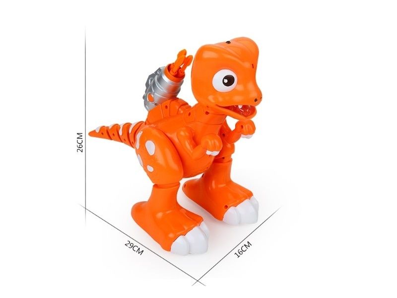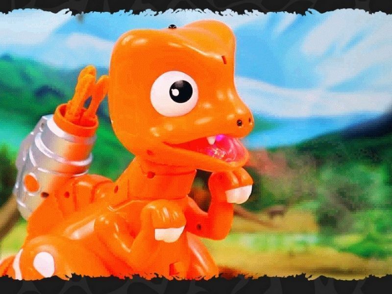При возникновении опасности умеет издавать грозные звуки, разбрызгивать воду из пасти и стрелять ракетами, которых у него с собой 3 штуки. А в целом, это безопасная игрушка, которая умеет петь и танцевать.