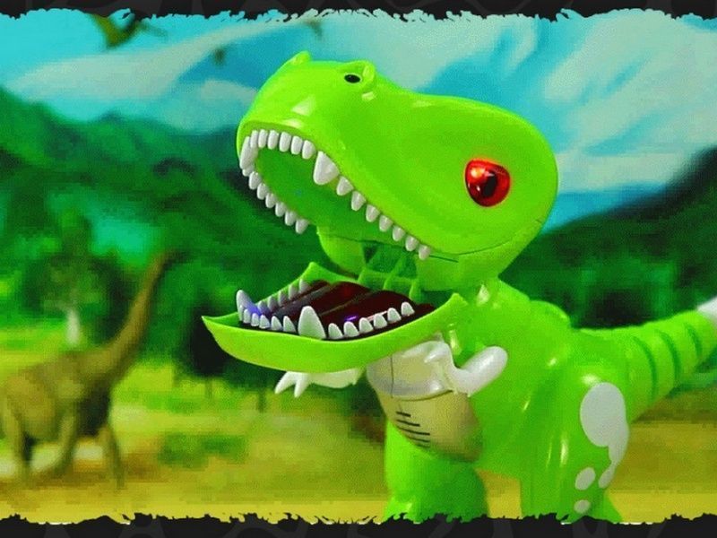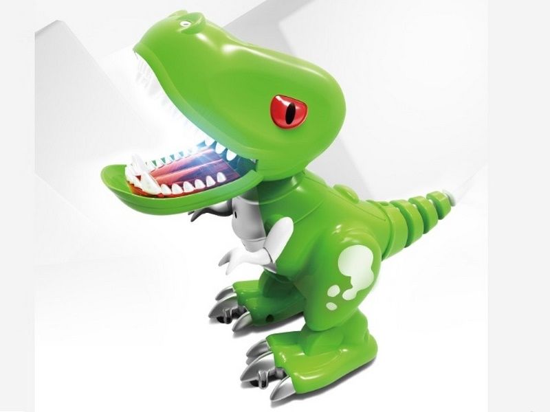 У динозаврика подвижные челюсти и конечности, глаза и рот оснащены светодиодными огнями. И он умеет издавать звуки, чтобы игра с ним стала интереснее.