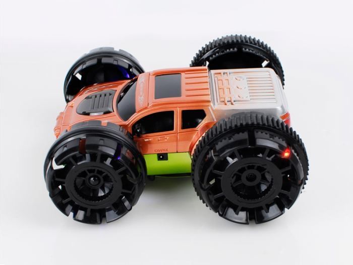 Многофункциональная компактная радиоуправляемая трюковая машинка YE8885 - это такой трек-перевертыш, двухсторонняя конструкция которого позволяет ездить на любой стороне.Радиоуправляемая машинка YE8885 непременно превратится в любимую игрушку любого мальчика, ведь она не только ездит по земле, разворачивается в разные стороны и кружится вокруг своей оси на 360 градусов на задних колесах, но и способна на неровных поверхностях совершать прыжки и сальто под углом в 90 градусов. Также машинка имеет яркие световые эффекты, что значительно повышает к ней интерес, ведь с ней можно придумать столько разнообразнейших игр, в которые не поиграешь с обычными радиоуправляемыми машинками!