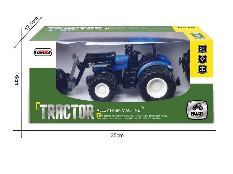 Трактор двигается вперед, назад, способен повернуть налево и направо, включить/выключить свет, а также включается демонстрационный режим. К тракторам Korody легко прицепляется навесное оборудование, чтобы показать детям, как возделываются поля и выращиваются сельскохозяйственные продукты. Трактор имеет в комплекте фронтальный погрузчик.