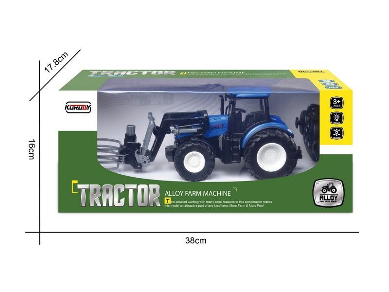 Трактор двигается вперед, назад, способен повернуть налево и направо, включить/выключить свет, а также включается демонстрационный режим. К тракторам Korody легко прицепляется навесное оборудование, чтобы показать детям, как возделываются поля и выращиваются сельскохозяйственные продукты. Трактор имеет в комплекте погрузчик тюков.
