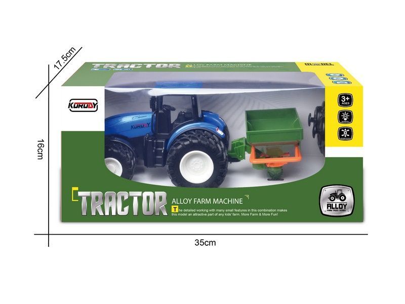 Трактор двигается вперед, назад, способен повернуть налево и направо, включить/выключить свет, а также включается демонстрационный режим. К тракторам Korody легко прицепляется навесное оборудование, чтобы показать детям, как возделываются поля и выращиваются сельскохозяйственные продукты. Трактор имеет в комплекте поливалку. Поливалка легко снимается и может перемещаться самостоятельно.